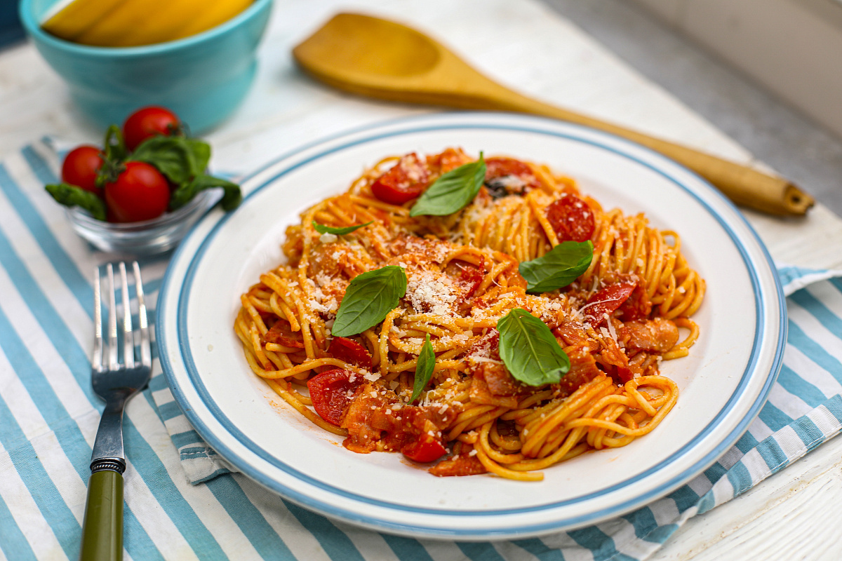 Спагетти Аматричиана — это не просто блюдо, а настоящая кулинарная история, поражающая своим ароматом и вкусом. Происходя из небольшого городка Аматриче в итальянской провинции Риети, этот соус был изначально создан с использованием томатов и свиной щековины. Однако Рим преобразил его, добавив лук и чеснок, что дало начало новой традиции, которая быстро завоевала популярность по всей стране. Любопытно, что в римском диалекте название соуса звучит как «Матрициана».