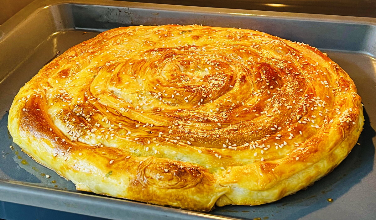 После того как тесто настоялось, начинайте его тянуть до тонкого состояния, а затем сложите в три слоя. На один край выложите подготовленную начинку и заверните в рулет, который затем можно свернуть в улитку. Повторяйте этот процесс, складывая пирог из последующих рулетов, и укладывайте их на противень.