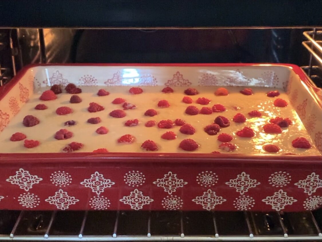 Подготовьте форму для запекания, смажьте ее сливочным маслом. Переложите в нее творожную массу, добавьте свежие ягоды и распределите сверху тонкие ломтики сливочного масла — это важный момент, который сделает запеканку более вкусной.