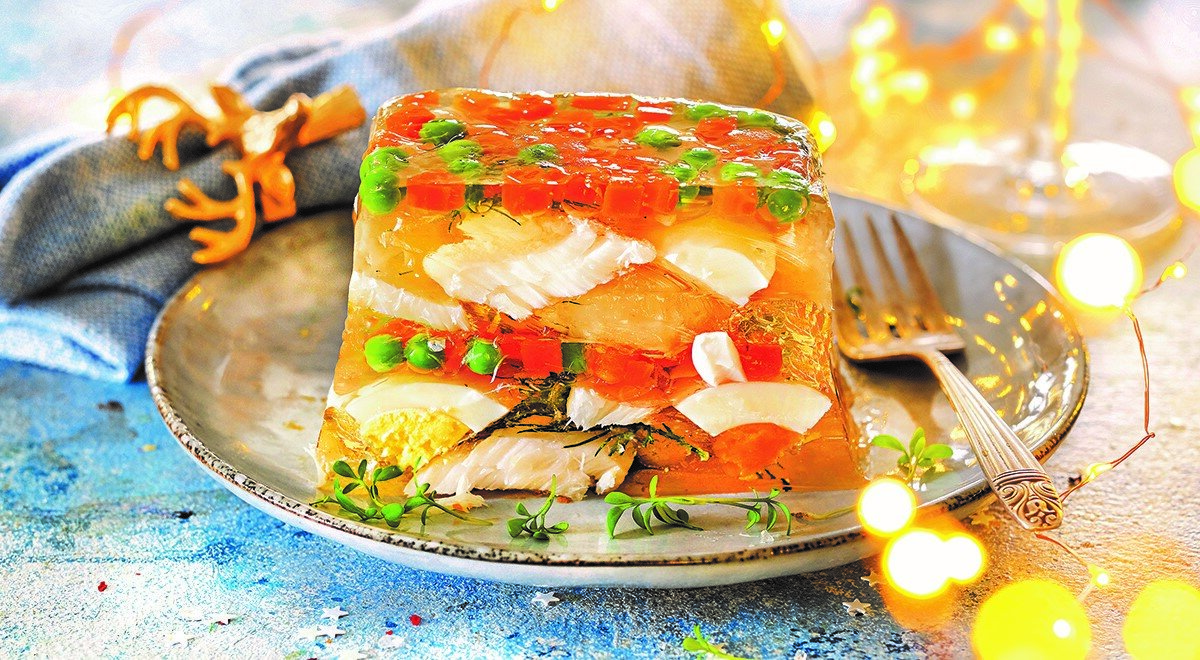 - Рыба: свежая рыба, такая как лосось или судак, отличны для нежного и ароматного заливного.