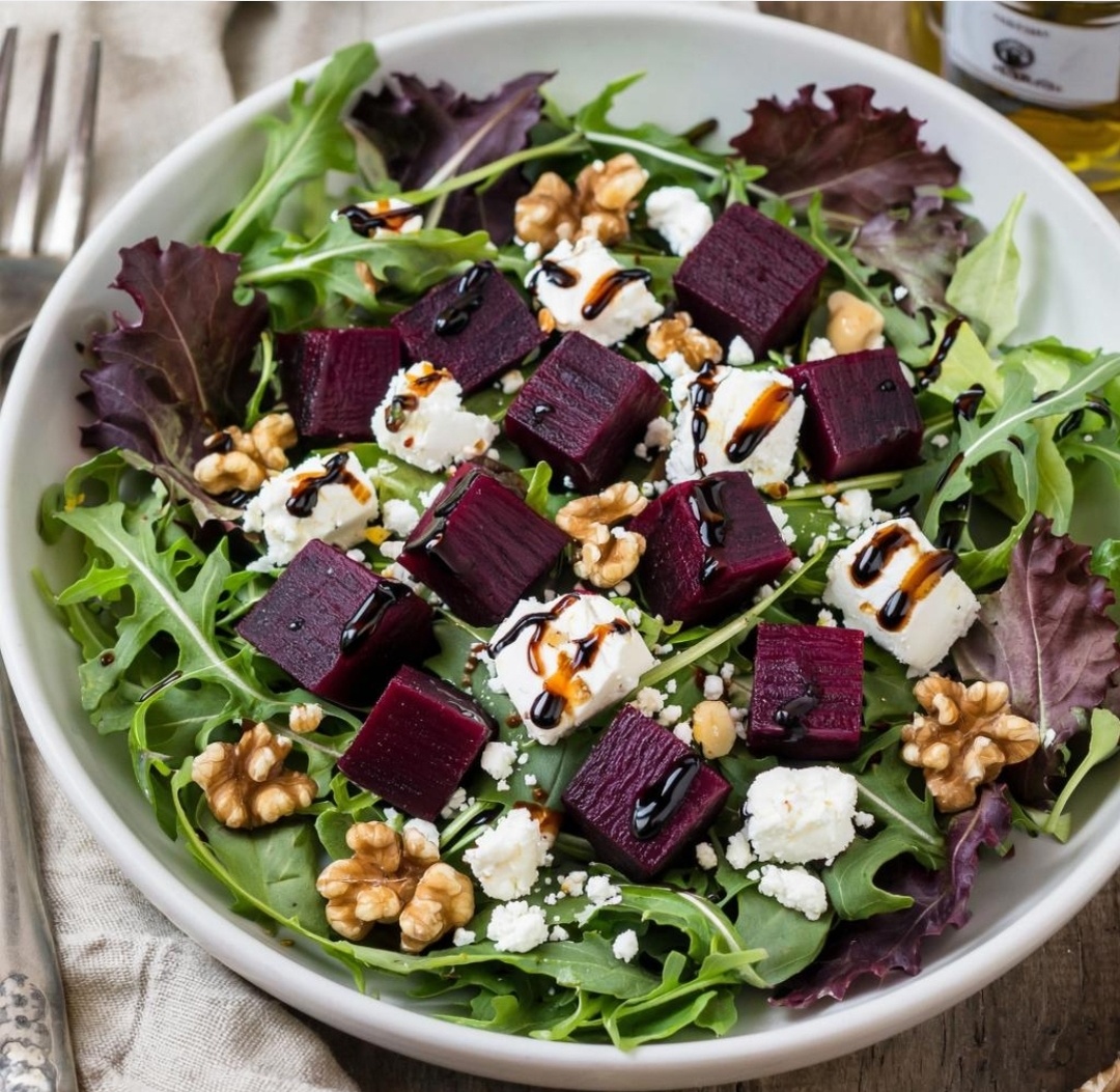 В этом удивительном блюде сочетаются сладость запечённой свёклы, пикантность козьего сыра и хрустящие орехи, создавая настоящую симфонию вкусов. Этот салат не только украсит любой стол, но и станет настоящим гурманским открытием для самых взыскательных любителей кулинарного искусства.