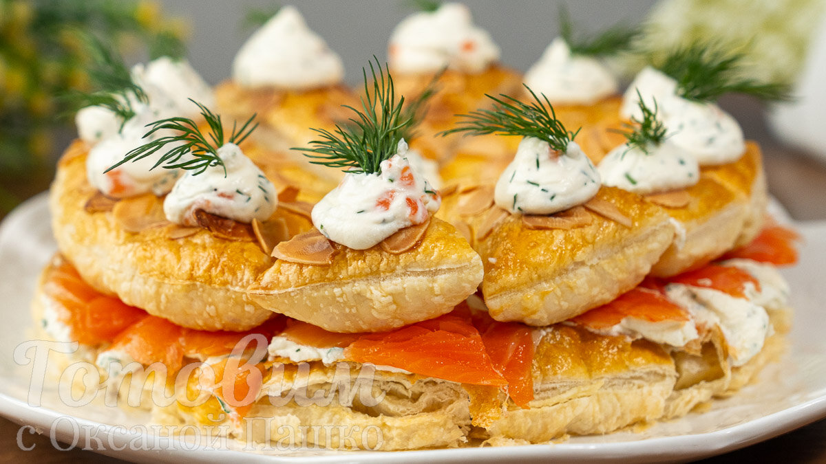 Эта закуска с красной рыбой не только порадует глаз, но и удивит гостей своим неповторимым вкусом. Нежность сливочного крема прекрасно оттеняется соленой рыбой, а коржи из слоеного теста придают закуске особый праздничный шарм.
