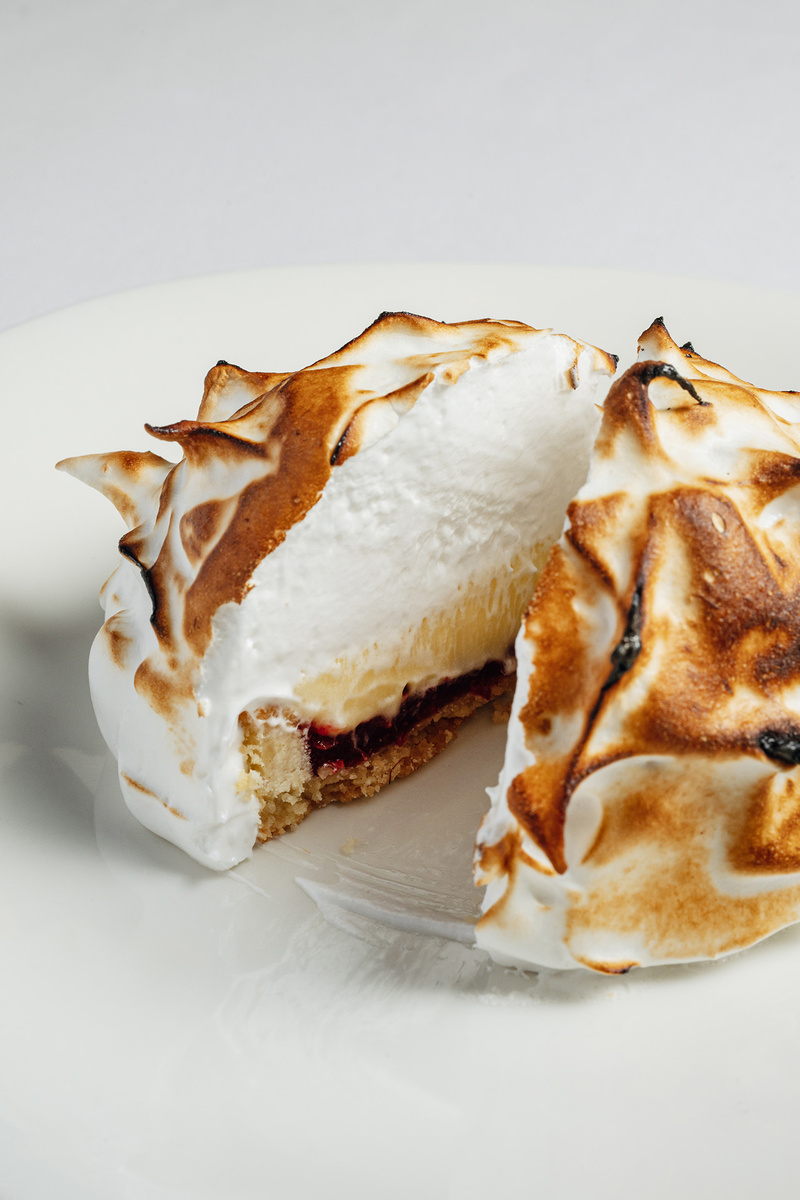 В бистро InOut представили десерт «Гренландия», который стал своеобразной интерпретацией классического блюда «Аляска». Шеф-кондитер Лианна Хуснуллина создает песочную тарталетку с малиной и лимоном, украшенную обожженной меренгой — визуальное и вкусовое наслаждение.