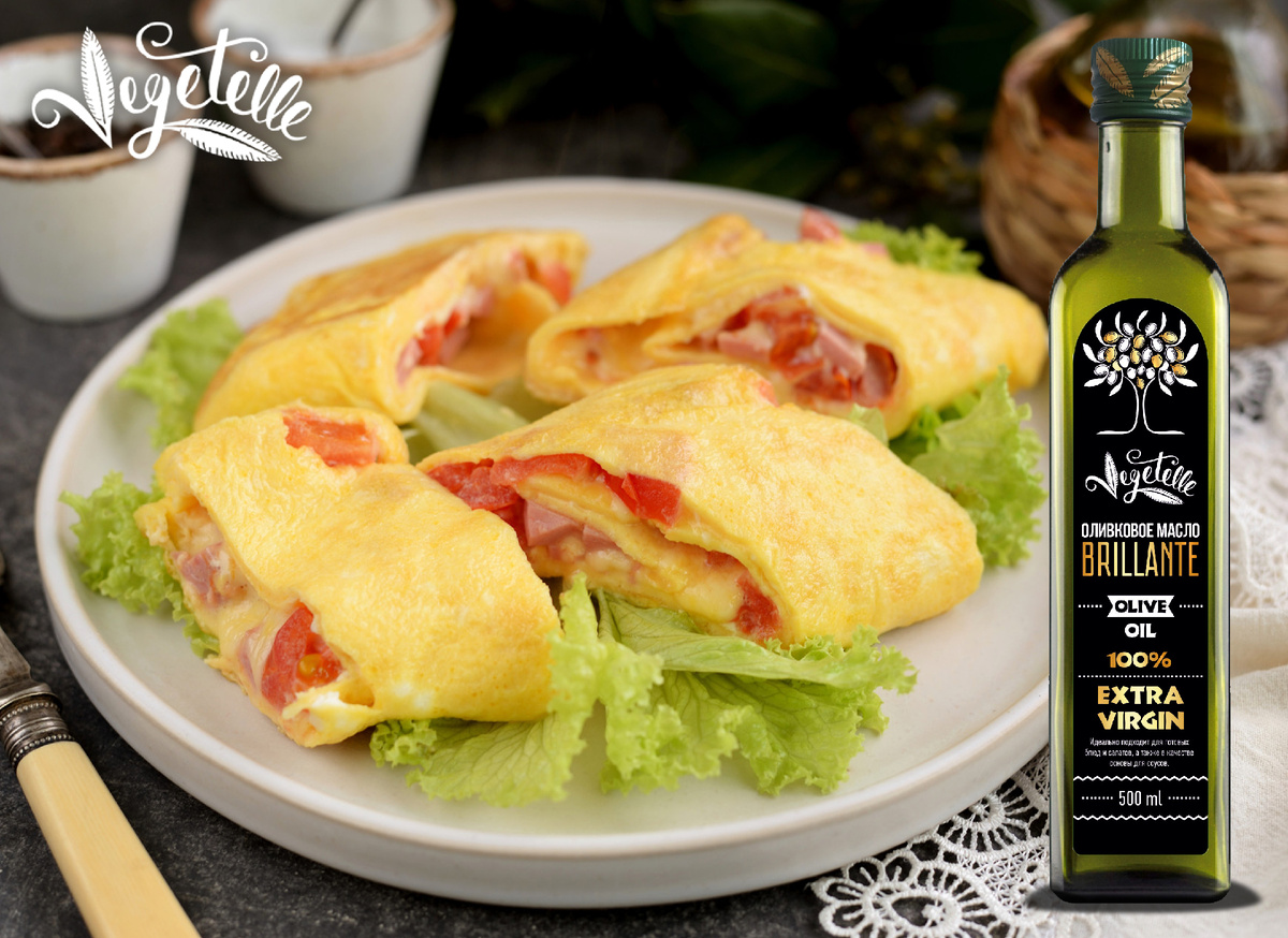 Далее важно хорошо разогреть оливковое масло на сковороде, затем вылить туда яично-молочную смесь и аккуратно разместить кусочки ветчины. После этого сверху раскладывают кружочки помидоров, накрывают крышкой и готовят на маленьком огне около восьми минут.