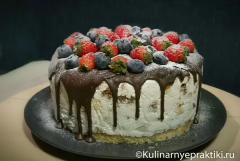 Глазурь лучше всего готовить уже после того, как торт освобожден от формы и ягоды высушены. Работая быстро, можно достигнуть идеального результата: глазурь льется равномерно и ягоды остаются на месте. Чтобы торт выглядел аппетитно, добавьте немного сахарной пудры перед подачей.