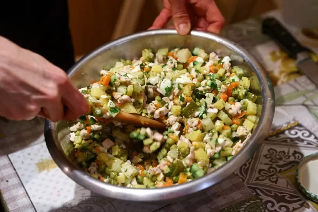 «Салаты с морковью по-корейски безопаснее мясных. Например, 'Селедка под шубой' более рискованна, чем греческий салат. Оливье, мимоза и крабовый салаты, в которых много ингредиентов и майонеза, тоже могут быть опасными. Если речь идет о 'Цезаре', предпочтение стоит отдать варианту с курицей, а не морепродуктами, так как они быстрее портятся. Оптимальны вегетарианские и веганские блюда, такие как винегрет или салаты без мяса. Важно выбирать салаты с минимальным набором продуктов из двух-трех ингредиентов», – предупредила врач.