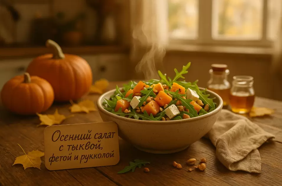 Тыква — это истинный символ осени. Она не только радует глаз своей формой и цветом, но и наполняет организм полезными веществами. Бета-каротин, витамины A, E, C, клетчатка и антиоксиданты — все это в одной тарелке. Сочетание мягкой сладости тыквы с соленой фетой и терпкой рукколой создает блюдо, которое приятно радует и наполняет энергией.