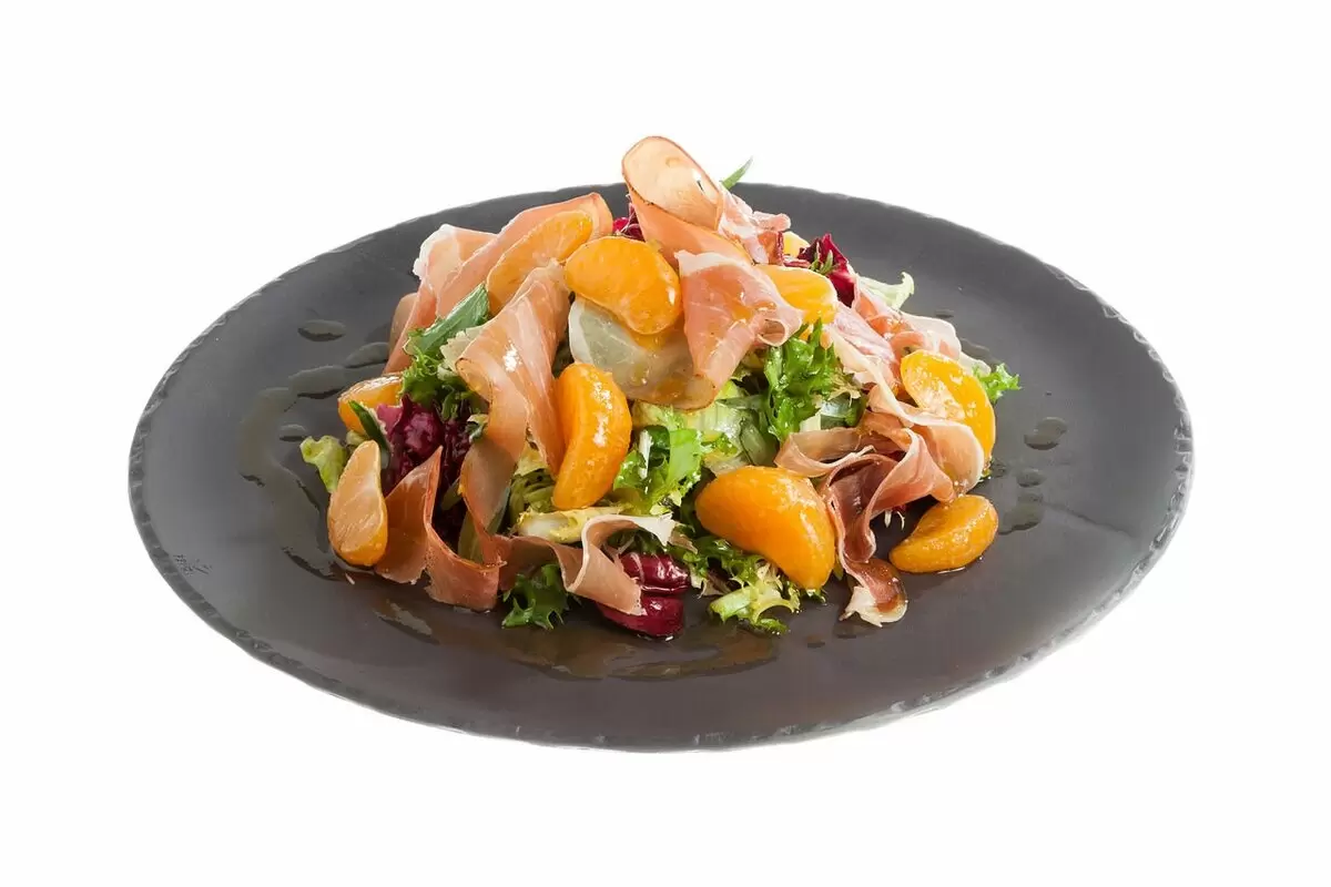 Этот легкий и изысканный салат, сочетающий в себе сладость мандаринов и пикантность прошутто, отлично подойдет для весеннего стола. Отличное решение для легкого перекуса или праздничного угощения.