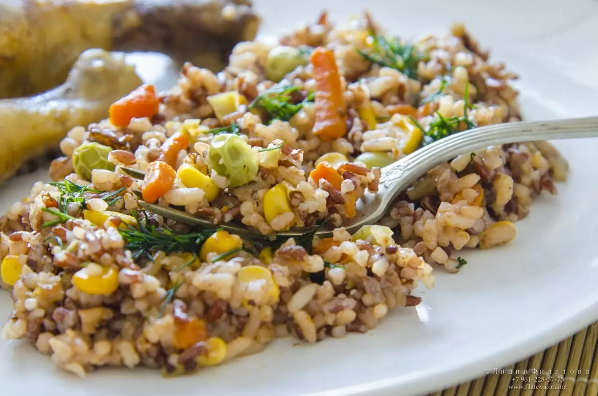 - Бурый рис или смесь белого и бурого риса — 2 чашки