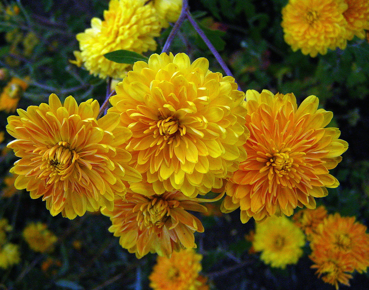 - Золотая осень: Этот сорт привлекает внимание своими крупными жёлтыми цветами с оранжевыми нюансами. Он стал символом тепла и уюта и хорошо переносит неблагоприятные погодные условия.