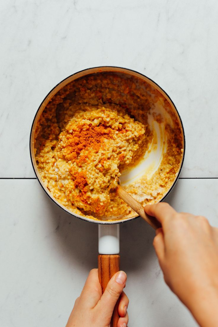 - Смешивать куркуму с кашами — овсянка, гречка и пшенка отлично подойдут.