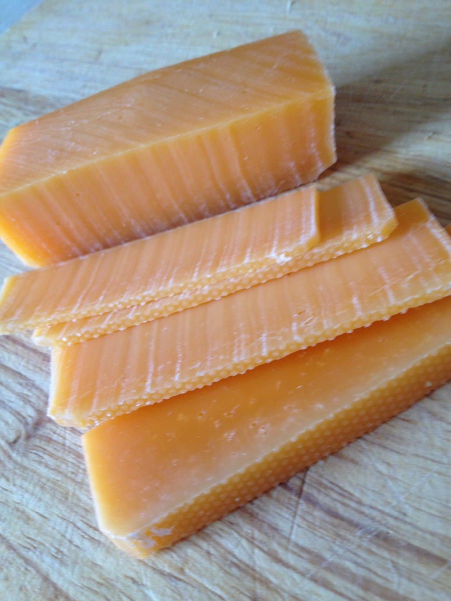 Почему чеддер обычно такой оранжевый? Все дело в том, что коровье молоко, получаемое летом, содержит больше жира и бета-каротина, что и влияет на цвет сыра. Для усиления этого эффекта фермеры стали применять аннато — натуральный краситель, который стал частью маркетинга для создания определенного имиджа сыра.
