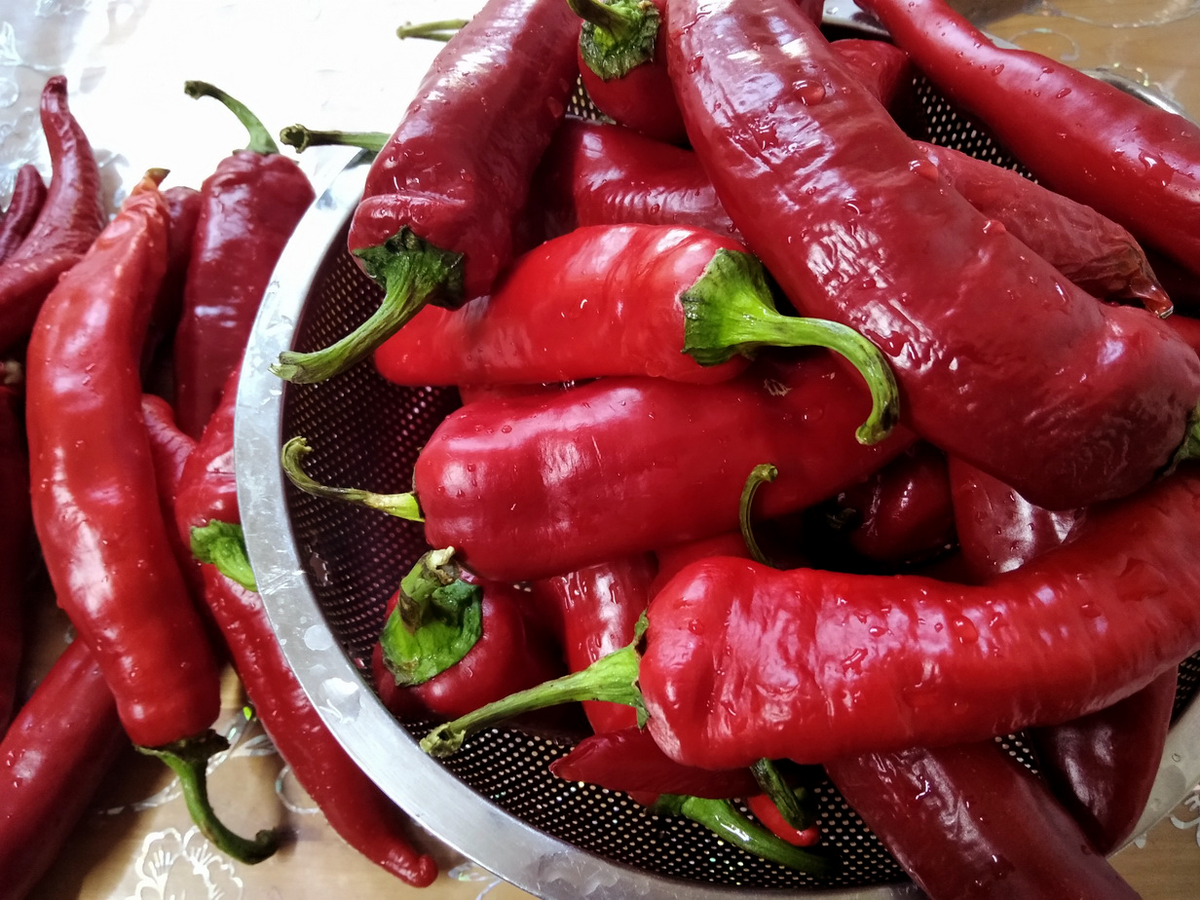 Подготовка перца: Жгучий перец тщательно промывают и оставляют, чтобы стёк excess воды. Затем срезают плодоножки.