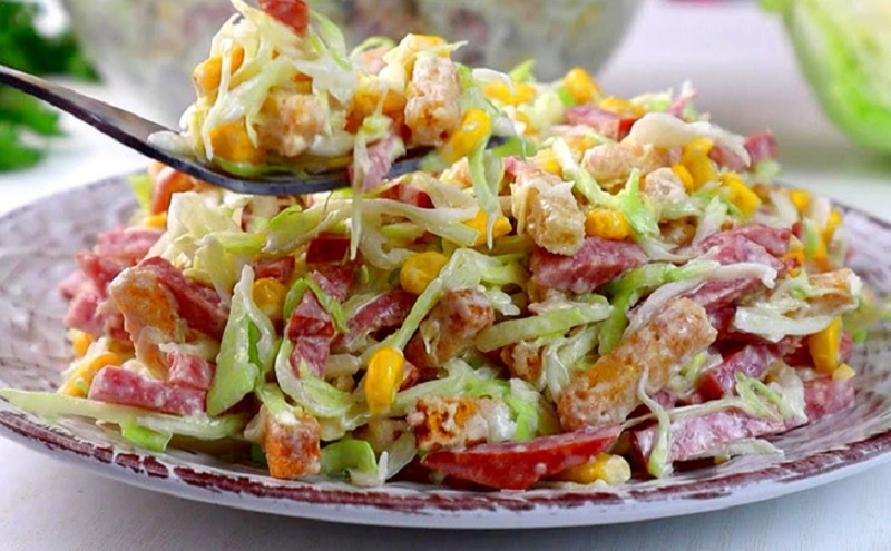 Салаты из капусты всегда занимали почетное место в русской кухне. Практичные и легкие закуски выделялись на праздничном столе. С появлением новых продуктов, таких как консервированная кукуруза и пшеничные сухарики, рецепты стремительно адаптировались к современным требованиям.