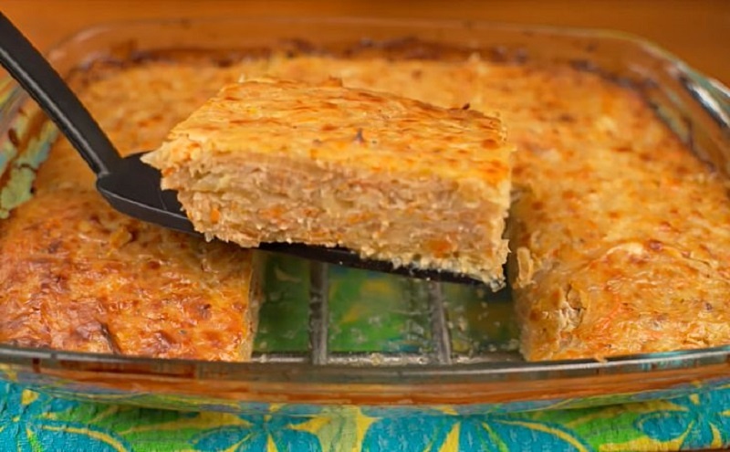 Когда блюдо будет готово, нарежьте его на порционные куски и подавайте со свежими овощами или различными соусами. Запеканка прекрасно гармонирует с легким салатом из огурцов и помидоров.