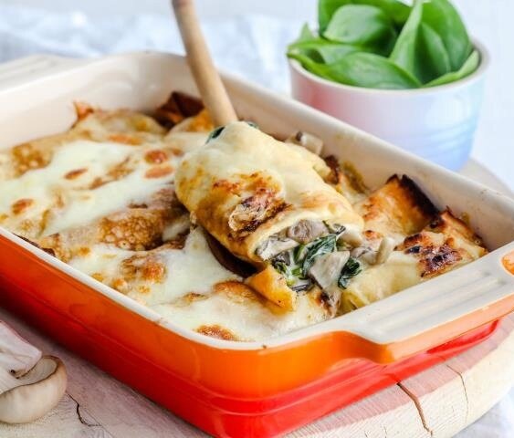 Вкусные блины с грибами, шпинатом и сыром для вашего стола