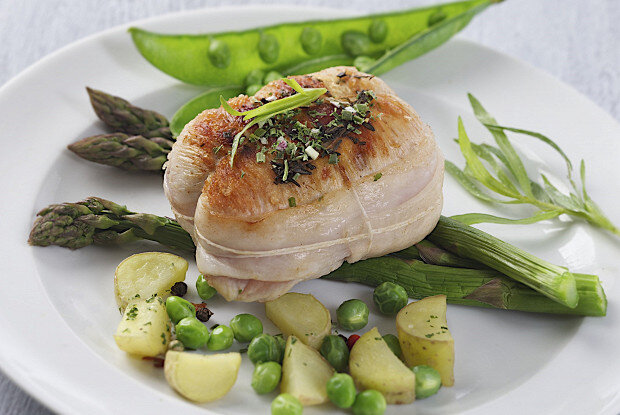 Сначала следует растопить сало в большой сковороде на среднем огне. Как только жир начнет плавиться, добавьте к нему мелко нарезанные лук и грибы.Увеличьте огонь и готовьте смесь около 6 минут, затем снимите с огня и переложите в миску, оставив сало на сковороде.В миску с овощами добавьте лимонную цедру, хлебные крошки, рубленую петрушку, половину чайной ложки горчицы и яйцо. Посолите, поперчите и тщательно перемешайте получившуюся начинку.Телячью вырезку нарезать на 8 тонких ломтиков и слегка отбыть. Обобрать их солью, перцем и тимьяном.На каждый ломтик выложите начинку, аккуратно заверните их и оберните беконом, после чего завяжите бечевкой.Разогрейте сковороду с оставшимся салом и обжарьте рулеты до золотистой корочки с обеих сторон.Добавьте воду, чтобы она почти покрывала мясо, и тушите 10 минут.В конце добавьте измельченный чеснок и оставшуюся горчицу, затем вмешайте муку, убавьте огонь и продолжайте готовить на медленном огне около 30 минут.В результате получится насыщенный соус, который прекрасно подойдет для подачи с рисом или картофелем. Наслаждайтесь!