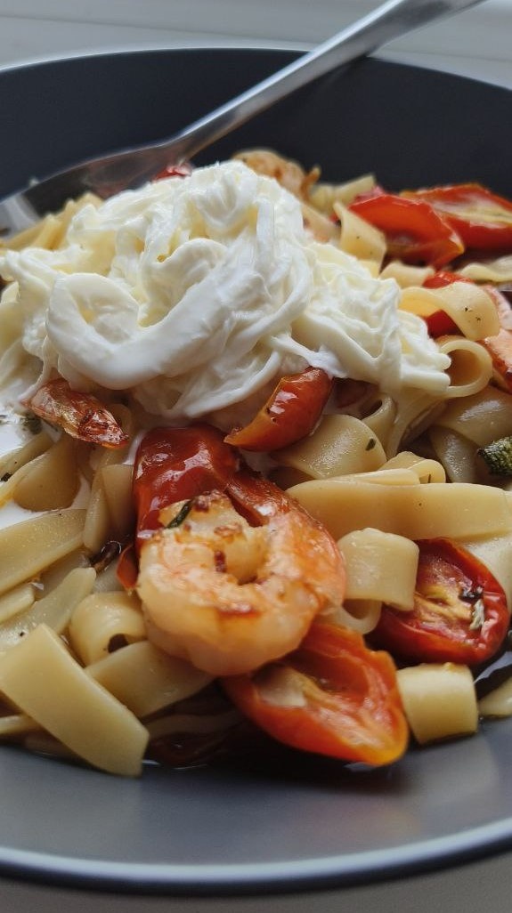 Это блюдо, безусловно, привлечет внимание. Баклажаны придают мясистость, креветки добавляют морской свежести, а страчателла творит настоящие чудеса с текстурой. Если сыр не растекся, значит, не был подготовлен должным образом – дайте ему немного времени при комнатной температуре!