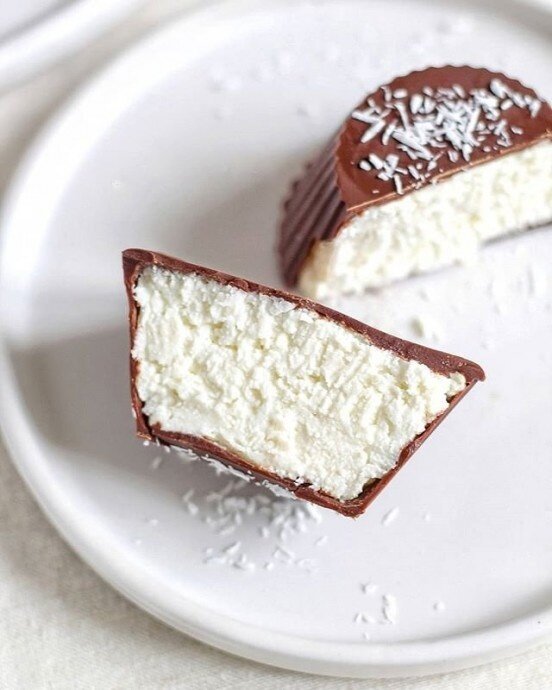 Заполните формочки с застывшим шоколадом творожной массой, стараясь избежать пустот.