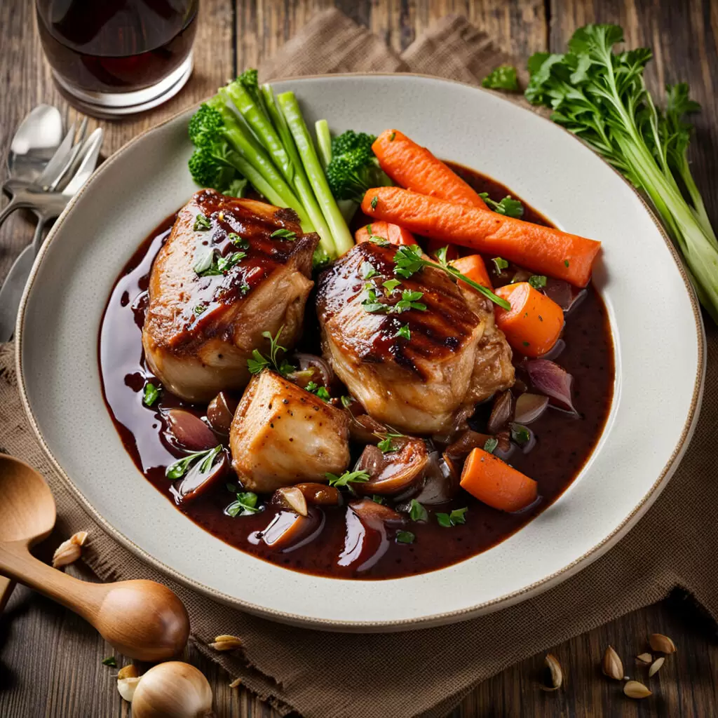 Классическое блюдо: курица в красном вине