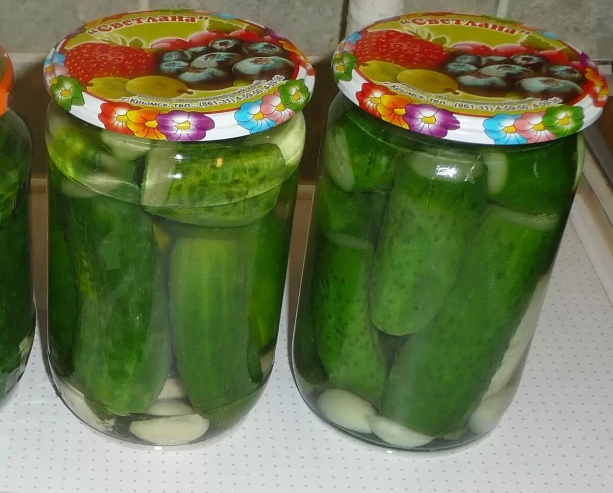 После заливки маринада рекомендуется подождать минуту без крышек, чтобы вышел воздух, а затем банки аккуратно закатываются. Закатанные банки переворачиваются вверх дном и оставляются в таком положении до полного остывания. Этот этап очень важен: не стоит накрывать банки, иначе огурцы могут стать мягкими.