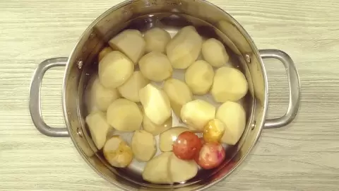 Прежде всего, стоит тщательно вымыть картошку. Чистить или нет — дело ваше, но если овощи не идеальны, то крупные картофелины лучше очистить, а мелкие оставить с кожурой. После этого их нужно отправить в кастрюлю, залить холодной водой и варить около 10 минут с момента закипания, немного посолив. Этот шаг придаст картошке сочность, если сразу отправить её в духовку, она может получиться слишком сухой.