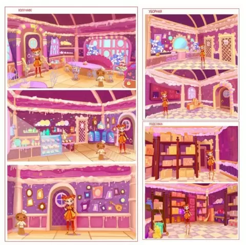 Интерьер кафе завораживает своим сладким и атмосферным дизайном, где каждая деталь создана с любовью. Яркие акценты, мягкие текстуры и уютная обстановка делают его идеальным местом для встреч с друзьями или романтических ужинов.