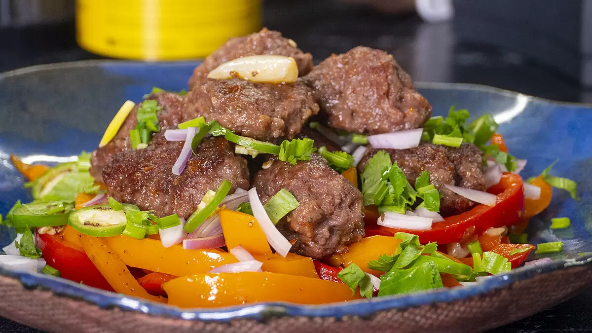 Необычное и яркое блюдо из фарша, способное удивить даже самых взыскательных любителей кулинарии, доступно каждому. Сочетание ароматных фрикаделек с обжаренными болгарскими перцами, свежей зеленью и пикантными специями порадует не только глаз, но и вкус!