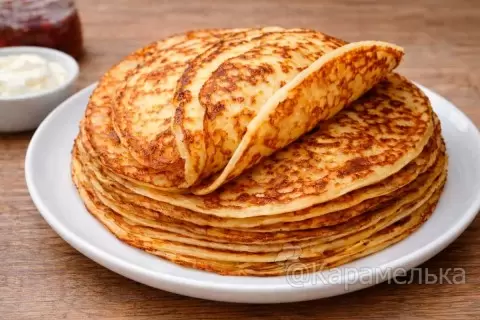 Готовые блинчики складывайте на тарелке и накрывайте полотенцем, чтобы они не остывали. Интересный факт: дети не смогут устоять и обязательно попробуют «всего лишь один» блинчик, а потом исчезнут с полной тарелкой.