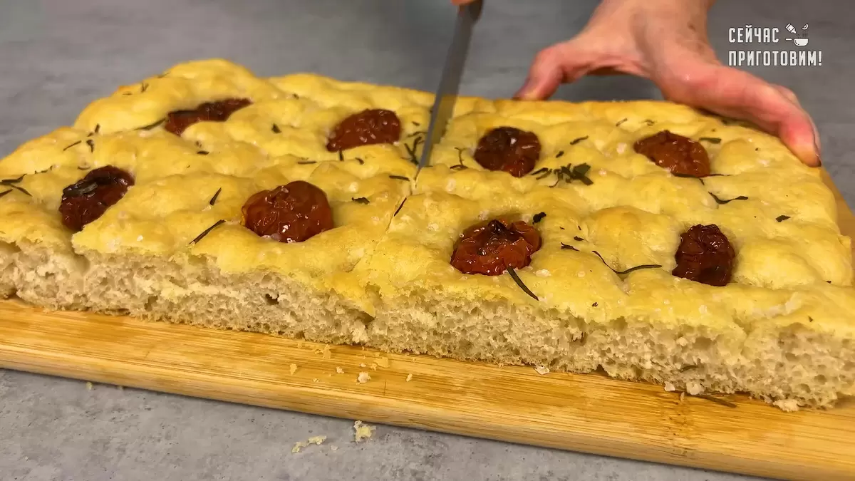 После выпечки дайте фокачче немного остыть, прежде чем нарезать. Она получится невероятно ароматной и мягкой с хрустящей корочкой — идеальное дополнение к любому блюду.