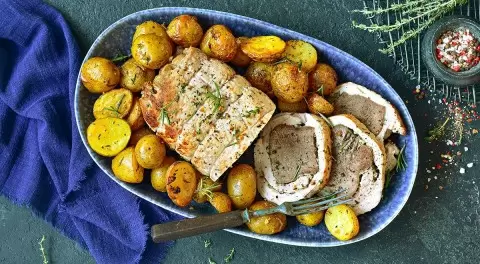 6. Поместите рулет в заранее разогретую духовку и готовьте час. Он будет готов именно к тому моменту, как ваши близкие начнут наслаждаться закусками.