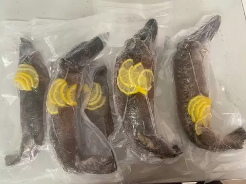 Эта рыбка станет прекрасным украшением любого праздничного стола. Она подойдёт для запекания и будет выглядеть стильно благодаря наличию головы — жабры, по желанию, были аккуратно удалены.